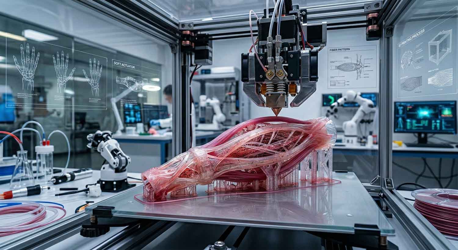 Αυτοί οι εσωτερικοί αγωγοί λειτουργούν ως το «νευρικό σύστημα» του μυός. Όταν διοχετεύεται αέρας ή υγρό στο εσωτερικό τους, η δομή παραμορφώνεται με προγραμματισμένο τρόπο, προκαλώντας κινήσεις όπως κάμψη, συστροφή ή ανύψωση. Η σημασία αυτής της εξέλιξης είναι τεράστια, καθώς η λογική της κίνησης ενσωματώνεται απευθείας στον σχεδιασμό του υλικού κατά τη διάρκεια της εκτύπωσης. Αυτό καταργεί την ανάγκη για βαριά και ογκώδη μηχανικά εξαρτήματα, επιτρέποντας στα ρομπότ να είναι ελαφρύτερα, πιο ευέλικτα και ικανά να εκτελούν λεπτές εργασίες που απαιτούν «μαλακό» άγγιγμα.